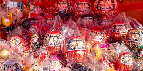 400年以上の歴史を持つ伝統行事。だるま、縁起物、飴を買い求める多くの人で賑わいます。